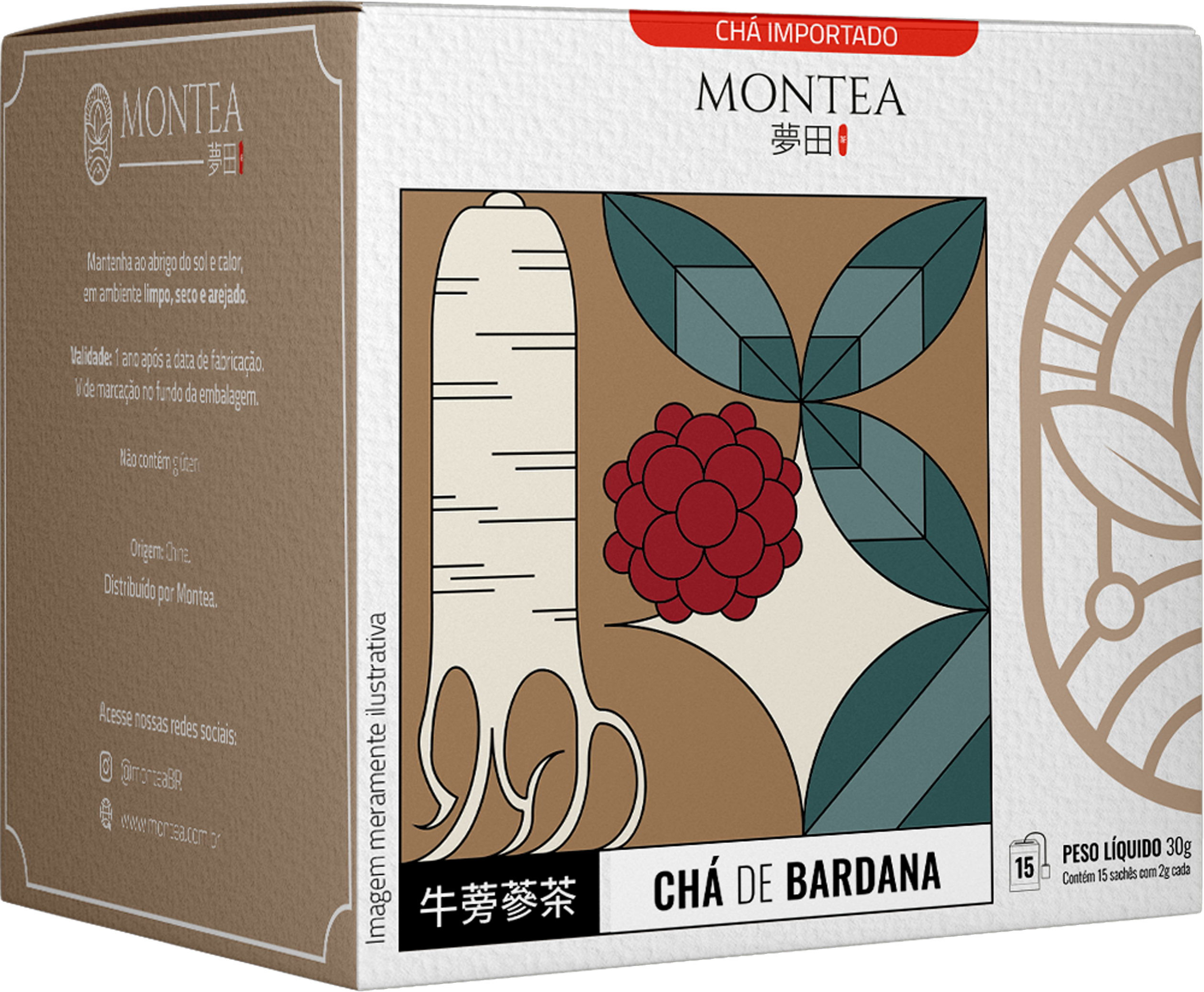 O chá de bardana é preparado a partir da raiz da Arctium lappa, planta tradicionalmente utilizada em diversas culturas por suas propriedades naturais de apoio ao organismo.